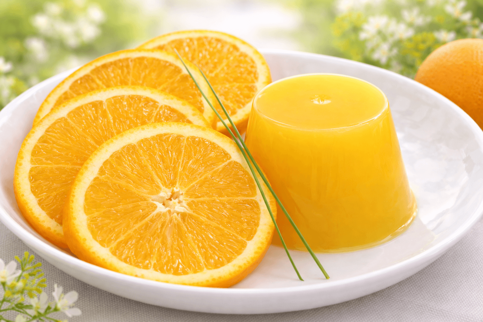 ②鍋にオレンジジュースを入れ、「①」を振り入れてかき混ぜる。
