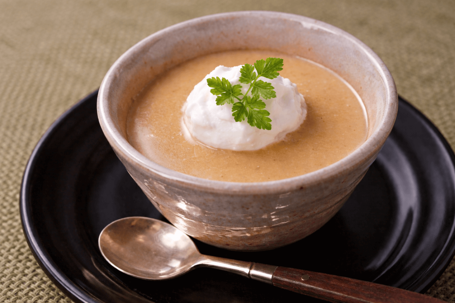③鍋に卵黄を入れかき混ぜ、「②」と生クリームを加え混ぜ合わせる。