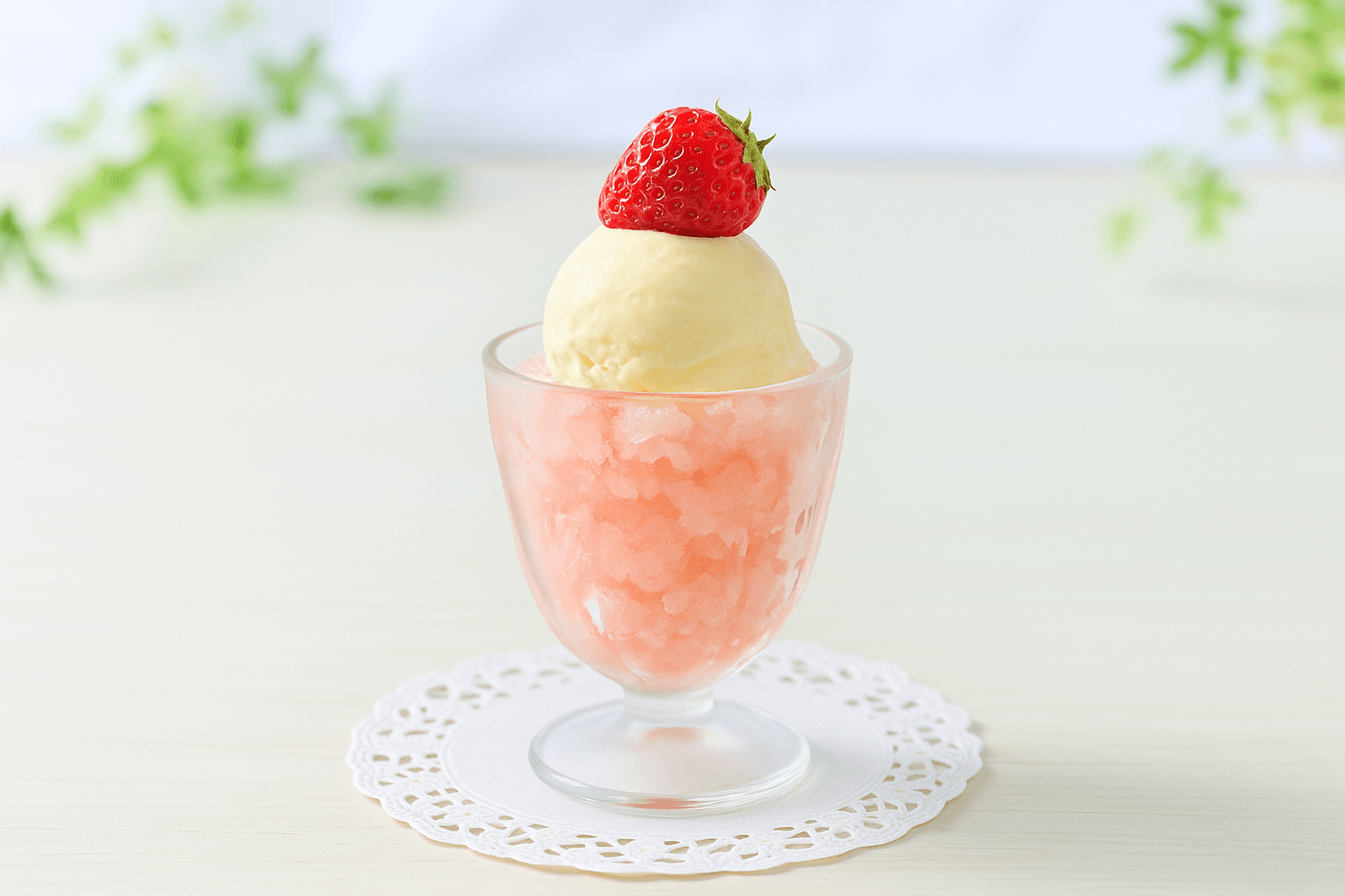 砂糖を60g、水飴を大さじ2、いちごシロップを抹茶大さじ1/2、いちごリキュールを抹茶リキュールに替えると、みぞれ抹茶ができます。