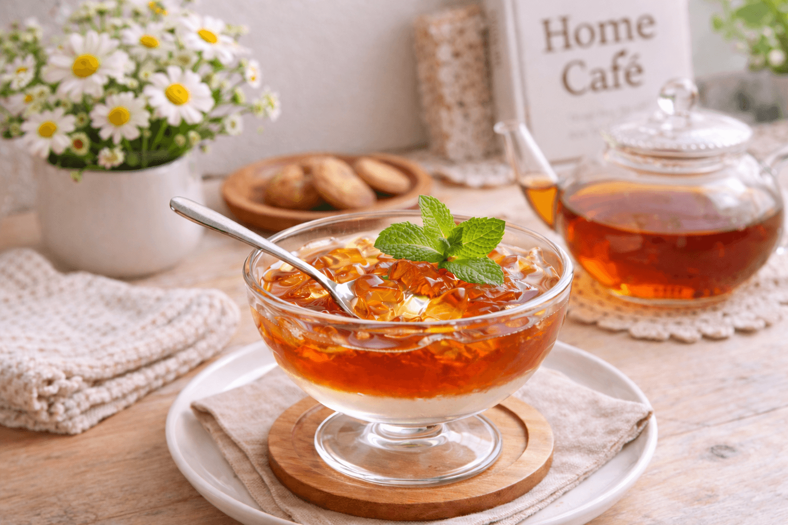 ①クリアガー5Aと砂糖を乾いた器に入れ、あらかじめ混ぜておく。 ②鍋に冷ました紅茶の半量を入れ、かき混ぜながら「①」を少しずつ加える。 ③火にかけ、沸騰したら火を止める。 ④残りの紅茶とブランデーを入れかき混ぜる。 ⑤お好みの型に入れ、冷やし固める。