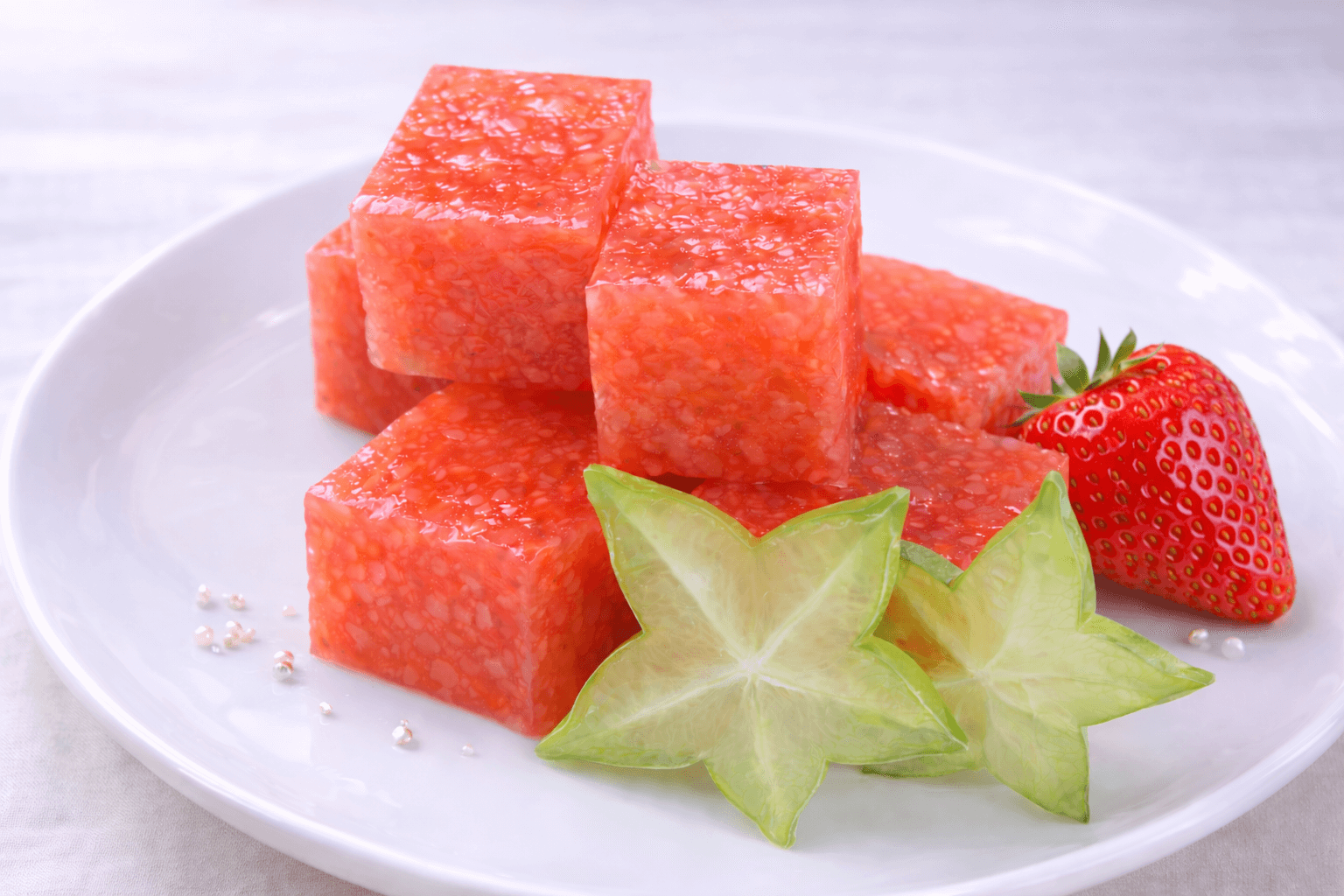 ①いちごを水で洗い、ヘタを取ってフードプロセッサーにかけるか、フォークなどでやや粒が残るくらいまでつぶす。
